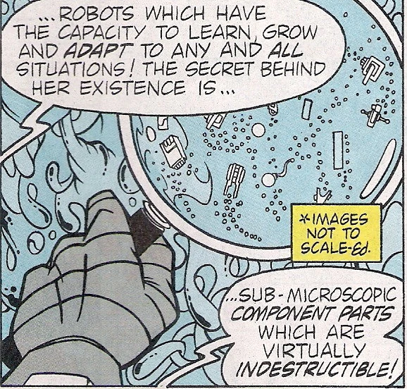 E.V.E., as the full meaning of her name suggests, was capable of evolving and adapting to various situations. In battle, this ability allowed her to recover and improve herself following every defeat. With each evolution, she became more and more powerful, evolving from a machine into a true life form of unparalleled abilities. She gained the ability to incorporate other technologies into her own body, allowing her to control them and improving her own abilities. She consisted of a network of nanites whose programming was based off Sonic and Robotnik's DNA. These nanites were designed to reassemble themselves into new and more powerful forms, hence her "evolution." (CSE)